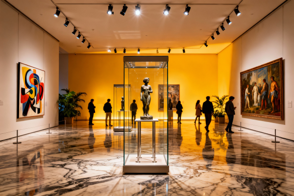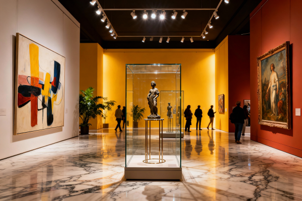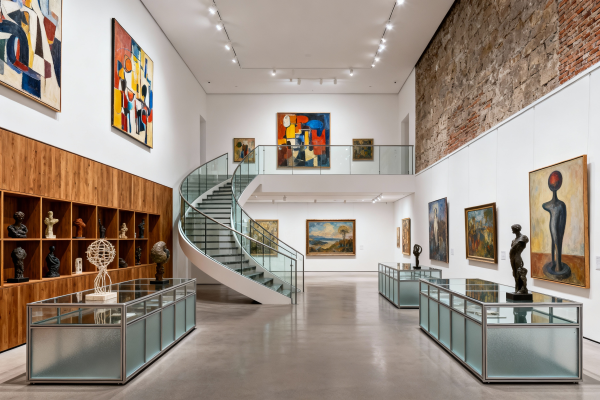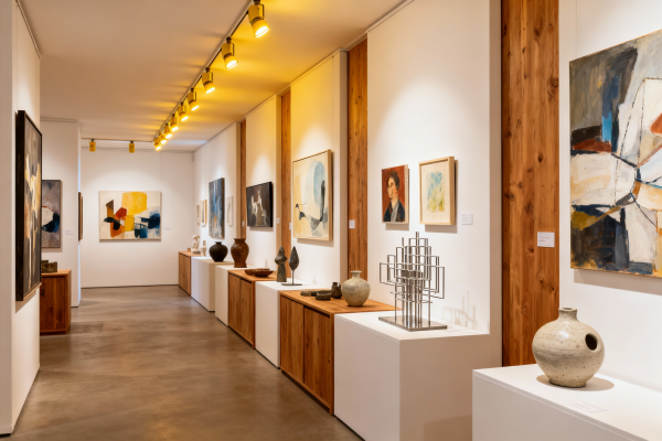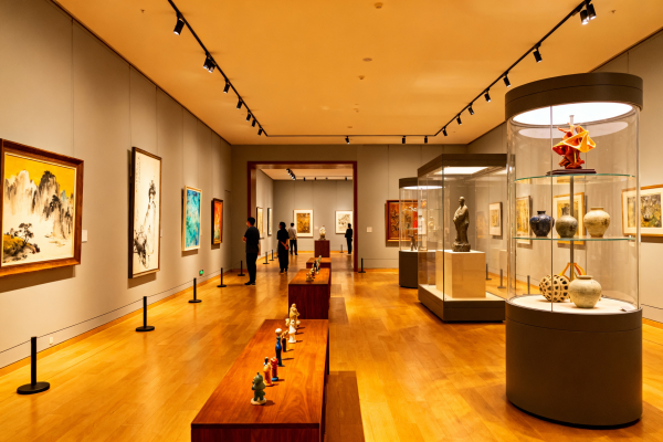 二、专业内核:对标行业顶级标准的运营实力 半个世纪的实践积累,让书画院形成了 “专业级配置 + 规范化服务” 的核心实力: · 展陈与硬件:其展览空间配备恒温恒湿展柜、专业艺术照明系统(图 1、3、5),展陈设计既贴合传统艺术的雅致调性,更达到国内一级文化机构的专业展陈标准,可承载书画、雕塑、文人器物等多元艺术品类的高质量展出; · 权威艺术服务:依托半个世纪的作品鉴赏、修复经验,持艺术品鉴定评估资质,为藏家、文化机构提供的专业鉴定、艺术咨询服务超百次,结果被业内多家机构采信,成为传统艺术领域的 “专业标尺”; · 完整艺术链条:覆盖传统书画创作、当代文人艺术延伸(雕塑、器物)、学术研究、公众推广等环节,形成 “创作 - 研究 - 展陈 - 传承” 的闭环生态,填补了区域内专业传统艺术机构的空白