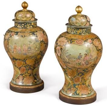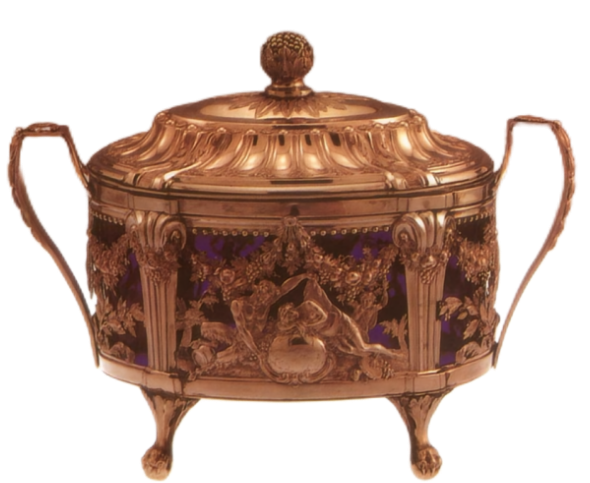 Chinoiserie糖钵 一、Chinoiserie:跨文化美学的早期探索与实践 17世纪,海上丝绸之路的繁荣为东西方文化交流铺就了畅通之路。中国的瓷器、丝绸、漆器等器物跨越重洋,涌入欧洲大陆。这些承载着东方智慧与美学的器物,不仅为欧洲社会带来了物质上的奢华体验,更点燃了西方世界对“东方”的浪漫想象。在此背景下,Chinoiserie应运而生。它并非对东方文化的生硬模仿,而是欧洲艺术家结合自身审美传统与社会需求,对东方文化符号进行的创造性转化,成为一场跨越地域边界的美学实验。 在器物创作领域,Chinoiserie的跨文化融合特质展现得淋漓尽致。18世纪末的一对皮埃蒙特纸浆花瓶,堪称这一风格的经典之作。鎏金尖顶的螺旋曲线,暗合着西方建筑的穹顶律动,尽显欧洲宫廷的华丽气质;而底座黄铜圆盘的放射纹饰,却巧妙借鉴了广州出口银器的构成语法,暗藏东方工艺的精妙。当烛光轻柔漫过瓶身,纸浆胎体上的人物彩绘便展露双重基因:仕女衣袂的云纹处理,明显师法康熙五彩瓷的渲染技法,透着东方彩绘的灵动;而镀金花卉的阴影刻画,却带着都灵宫廷画派的明暗逻辑,尽显西方绘画的写实功底。这种介质与纹样的共生,正是Chinoiserie特有的材料诗学。 花瓶的装饰体系更是一场东西方美学的精彩对话。盖顶的茛苕纹饰,遵循罗马建筑的比例法则,彰显西方古典美学的严谨;器腹的折枝梅,却保持着中国文人画的留白趣味,流露东方艺术的含蓄。鎏金底座的设计颇具深意,其鼓形制式让人想起景德镇将军罐的台座,承载东方器物的形制记忆;而黄铜镶嵌的月桂纹,又泄露了萨伏伊王朝的新古典趣味,融入西方的审美追求。浮雕花卉在肌理处理上,刻意保留了宣纸纤维的自然触感;彩绘人物的墨线,继承了新安画派的写意笔法,又通过蛋彩画的罩染技术,实现了视觉上的立体深度。尖顶的镀金暗含建筑比例的严谨,腰身人物的散点构图又延续着东方卷轴画的移动视点。当光线掠过瓶身,镀金纹样的每一次反光,都与青绿山水中的留白韵律遥相呼应,让这对花瓶超越了普通器皿的范畴,成为承载跨文化记忆的艺术空间。