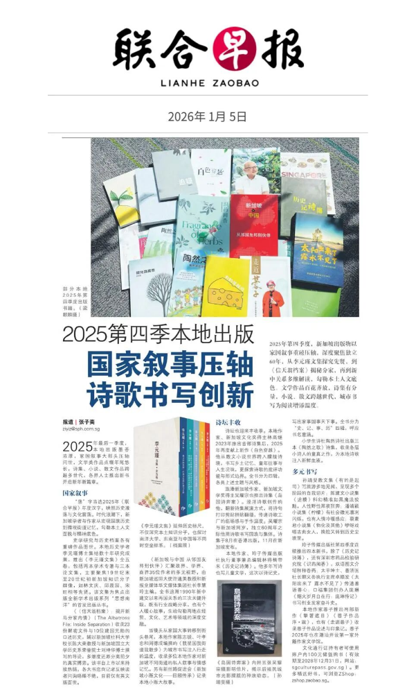 2026年1月5日于联合早报刊登了《2025第四季本地出版 国家叙事压轴诗歌书写创新》的报道。卓顺发太平绅士新著《太阳出来了,露水不见了》荣誉上榜。