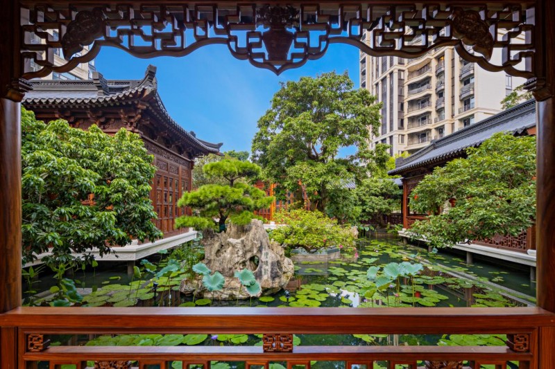 约1600㎡千平复式实景 在细节表达上,项目通过全球珍稀材质的甄选与匠心工艺的融合,将东方审美与世界顶级造材技艺对话——近百种源自意大利、巴西的世界奢石铺陈空间;煜丰实业高定木制品与现代扪皮、金属嵌套、刺绣等创新工艺碰撞,让地面、墙面成为文化艺术的载体。 “这里超越了物理空间,它是艺术品。”全球数创者表达了他们对半岛五號空间创新设计的深刻印象。 从标准化到个性化 赋新国际社交服务场域 数字技术的创新,往往体现在通过算法实现“千人千面”的精准服务。而在半岛五號的服务创新中,它以标准化体系将“个性化”服务推向新的高度。 星河湾·半岛五號以一座皇家合院园林风格的“星荟”会所,对国际社交标准重新定义。星荟以会员制专属服务为核心,设计了东苑与西苑双会客场域。东苑由瑶琴阁、观棋阁、枕书阁、如画阁四座建筑组成,承载茶艺、品酒、会客等交流场景;西苑引入锦鲤池、戏台,提供米其林级星跃私厨、恒温泳池、健身SPA等高端配套,将社交场域与园林艺术完美融合,构建了一个无法复制的高阶生活服务体系。