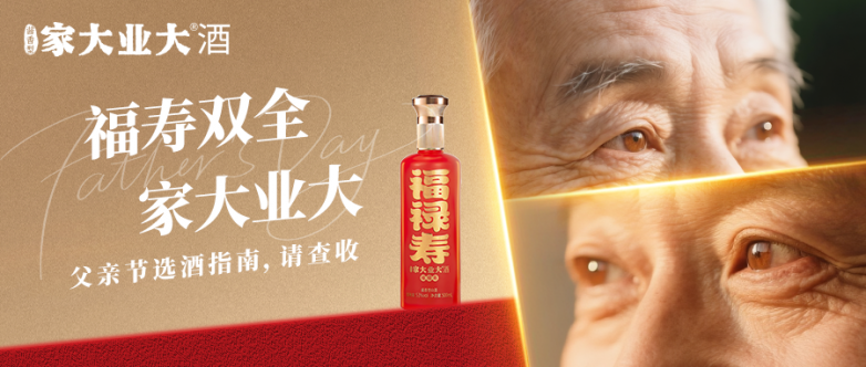 “爸,这杯酒祝您福禄寿” 一瓶家大业大酒·福禄寿,尽显父子情深,福泽深厚、禄位高升、寿比南山,中国人最父亲最深的爱酒藏在福禄寿三个字里面,这里包含了父子血脉、家族传承的传统与智慧。 红瓶金字的家大业大酒·福禄寿,是中国式子女最直白的祝福。 "入口柔、落喉顺、回味甘",淡淡粮香与花果香交织,绵柔醇厚,父亲节,敬爸爸一杯金奖品质的好酒,“爸,这杯酒祝您福禄寿”。