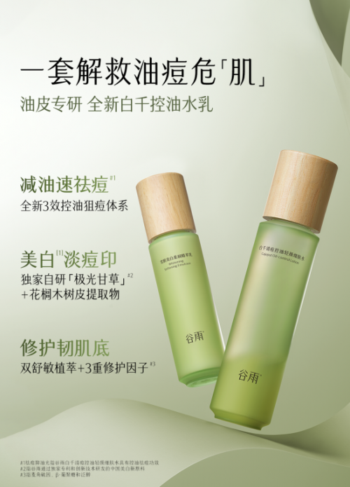在本次28天实测中,谷雨白千水乳凭借100%消费者认可出油减少、黑头粉刺-22.32%的优异成绩,毫无悬念拿下第一。一套直接实现强控油、速袪痘、一套击退油·痘·印,从成分搭配到质地设计都精准契合油皮需求,且通过了权威皮肤科安全性测试,敏感油皮也能放心使用。