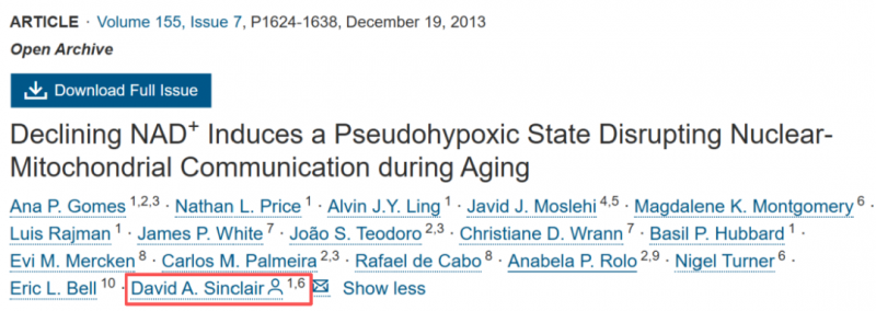 图. David Sinclair 2013 年在《Cell》期刊上发表的研究