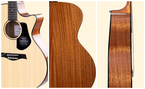 歌芮拉P20吉他材质配置 面板选材方面,P20采用AAA级英格曼云杉面单配置,这种木材以声音明亮、动态响应好著称,是专业演奏级吉他的常用面板材料。相比同价位常见的合板面板,云杉单板能带来更丰富的泛音和更快的开声效果。 背侧板方面,P20选用桃花芯木,这种木材在音色表现上中频饱满、音色温暖。面板和背侧板的这种“黄金搭档”,在音色上为P20提供了硬核保障。