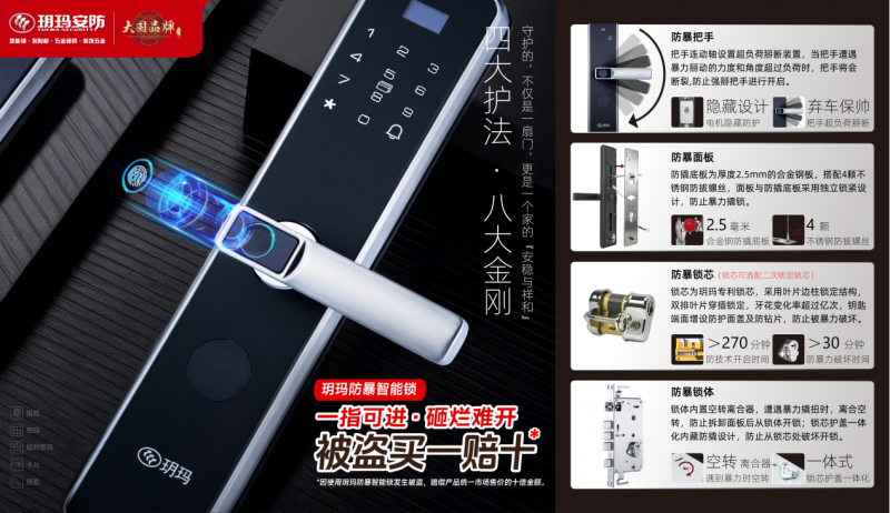 在当前智能锁市场乱象丛生、多数品牌沉迷功能堆砌的当下,玥玛防暴智能锁以差异化定位坚守安全本质,与普通智能锁形成鲜明区分,成为持续推动行业回归防盗初心的标杆。 当前智能锁行业陷入“重便捷、轻安全”的内卷怪圈,不少品牌过度聚焦在使用时并没实用价值的指纹识别速度、人脸识别角度、智能互联等花哨功能,一味强调电子功能概念,却有意无意忽视了锁具最根本的防盗使命,导致许多产品沦为“中看不中用”的花架子---锁芯简化、锁体单薄,既难以抵御专业技术开启,面对暴力撬砸也不堪一击,给用户家居安全留下极大隐患。
