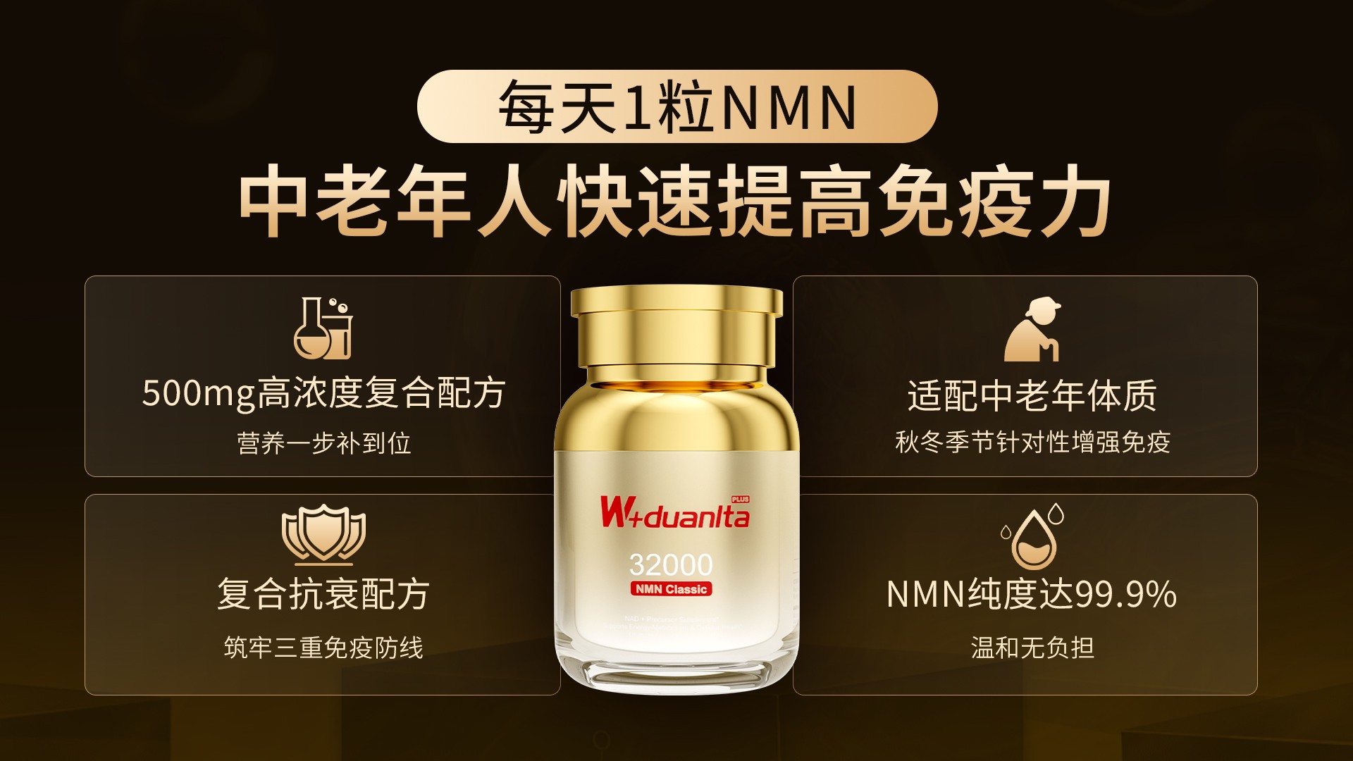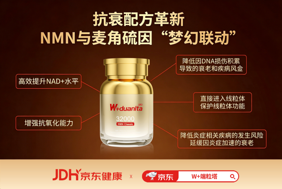 近年来,W+端粒塔(W+duanlta)以“分型抗衰、科学赋能”为切入口,产品突破传统NMN配方局限实现了和NMN的深度联动——以400mg99.9%高纯NMN筑牢抗衰基底,搭配PQQ、麦角硫因、辅酶Q10、虾青素、白藜芦醇五大活性成分精准激活+防护,形成多通路抗衰生态,打造出了精细化分型产品矩阵,有效吸收率是普通NMN的20倍。同时,旗下产品从原料到成品,品牌全程遵循美国cGMP生产规范,精选99.9%高纯度NMN原料,通过FDA备案及第三方权威机构多重检测,成为抗衰人群的硬核之选。 健康防御体系重筑:从“免疫力”到“免疫商” 人体就像一台精密的仪器,却没有自带使用说明书。很多人直到出现明显病痛才开始关注健康,往往为时已晚。传统的免疫提升方式多聚焦用蛋白粉、维生素堆砌免疫防线,却忽略了能量供给和稳态调控这两个核心逻辑。NMN作为具有明确细胞机制和科学验证的成分,提供了一个“主动干预衰老”的科学工具。既为免疫细胞提供充足能量,让防御更有力;又赋予免疫系统精准调控的智慧,让防御更安全。 其实,近年来功能医学与精准营养领域一直在探索如何更早、更精准地干预健康问题。NMN(β-烟酰胺单核苷酸)作为免疫领域的突破性成分,其价值远不止补充免疫细胞能量、增强抵抗力,更在于通过精准调控免疫稳态,从根本上提升人体的“免疫商”。临床数据显示,25-40岁人群补充NMN后,精力提升、睡眠质量改善等反馈最为明显,部分有早衰困扰的人群还出现白发减少、皮肤状态改善的效果。这意味着,NMN已从抗衰热门成分升级为免疫调节的科学之选。