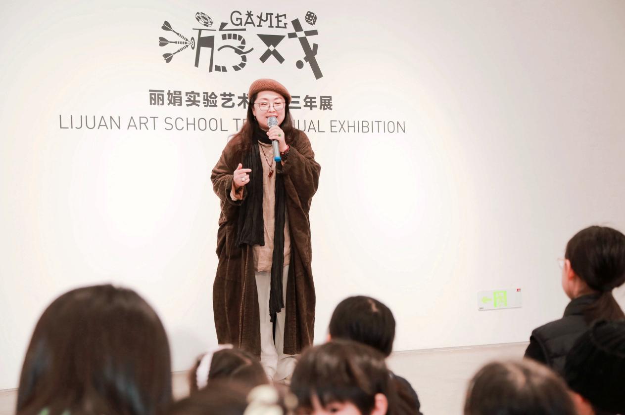 丽娟实验艺术创始人王丽娟在开幕致辞中提到,项目议题源于“孩子沉迷游戏怎么办”的提问,课程与展览希望推动孩子从“被动玩游戏”转向“主动创造游戏”,在设计规则和构建世界的过程中理解游戏的意义。她同时感谢OCAT为孩子们的作品提供美术馆专业的展览空间。