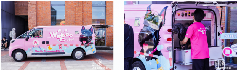 空间重构的本质,在于打破实体门店的地域桎梏,将服务从固定的物理坐标解放为流动的网络节点。Wagoo独创的移动洗护车,是一间功能完备的“移动宠物店”。车内整合了恒温SPA级洗护系统、智能吹干设备、专业美容工作台、基础医疗用品及健康检测工具等。这辆车打破了实体门店的地理束缚,能够灵活驶入社区楼下、商场停车场、园区、宠物友好街区等任何合规且便利的场景。对于用户而言,服务触达的终点,从一个预设的、被动的“服务终点”,转变为一个围绕用户即时需求生成的“需求原点”,极大降低了服务过程中的附加时间成本,尤其解决了多宠家庭、大型犬主、行动不便老人等群体的携宠出行难题。