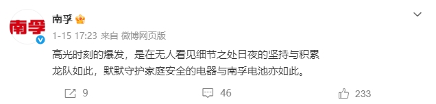 南孚电池官微的分享精准戳中了所有成就的核心:高光时刻的爆发,从来都源于无人看见细节之处日夜的坚持与积累。马龙在乒坛赛场的每一次登顶,南孚电池在家庭场景中的每一次稳定输出,都在印证这份藏在细节里的执着与沉淀,没有捷径可走,唯有日复一日的打磨。