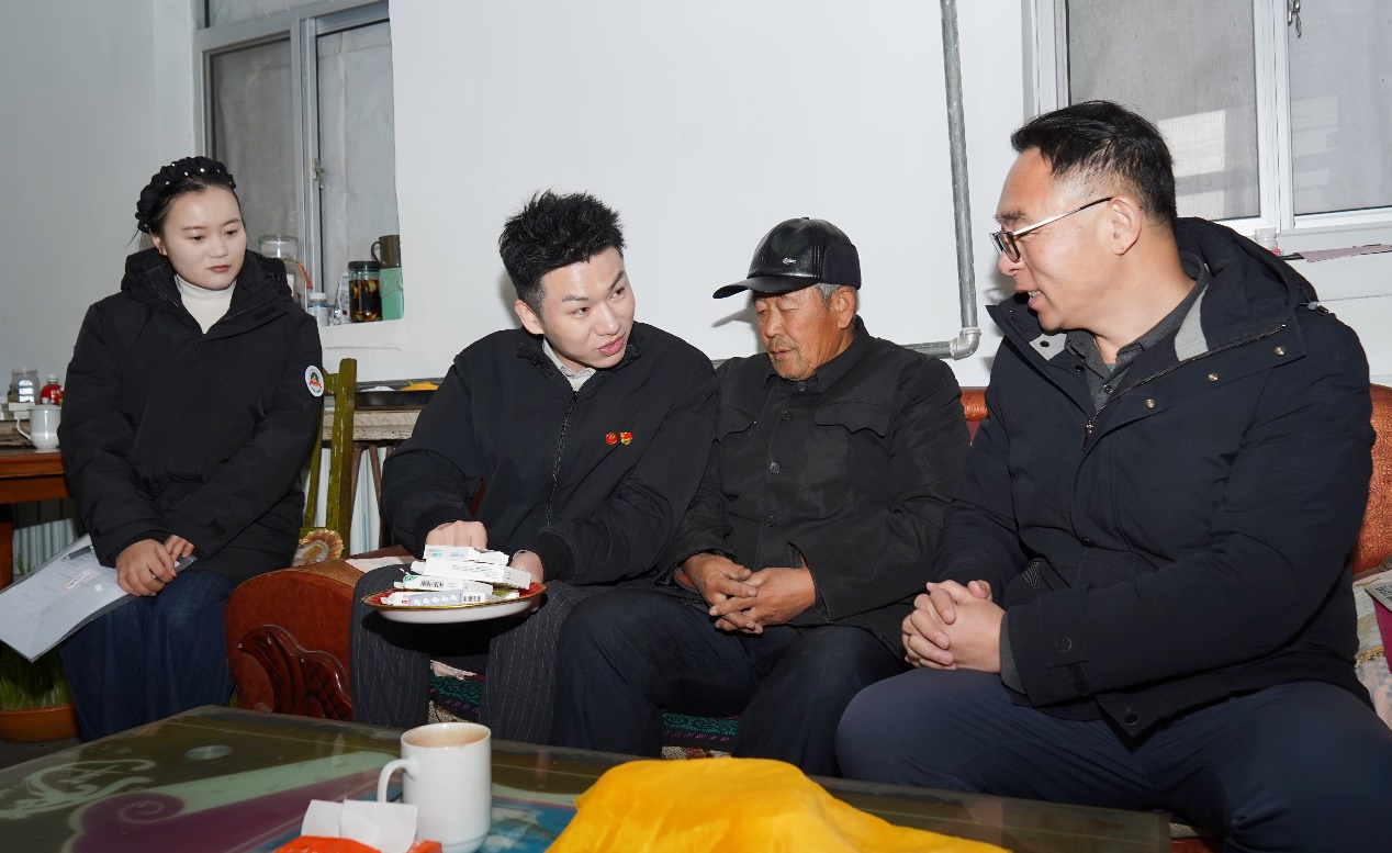 王祥新一行首先抵达焦老先生家中。今年75岁的焦老,1968年应征入伍,在新疆服役五年,退伍后无固定收入,常年被脑梗、高血压困扰,言语不清且需持续服药,生活多有不便。见到老人后,王祥新主动握住老人的手,亲切地与老人交流,仔细查看老人目前在服用的各类药品,反复叮嘱老人用药注意事项以及每隔3个月要去复查,结合老人的病情给出针对性的饮食和康复建议,细致入微的关怀让老人倍感温暖。同时,王祥新表示,未来会持续跟进老人的生活和健康情况,依托伯未集品牌搭建的退役老兵帮扶机制,为老人提供长期健康指导与生活帮扶,切实解决老人的后顾之忧,让老人能够安享晚年。