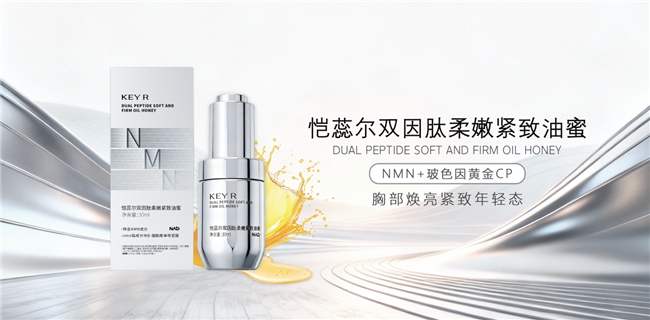 品牌进一步创新,将NMN与胶原“建筑师”玻色因复配,形成靶向解决胸部衰老的“黄金抗衰CP”。NMN负责为衰老细胞赋能充电,玻色因专注促进胶原新生、重塑支撑网络。KEYR双因肽柔嫩紧致油蜜采用独特的“水感油蜜”质地,兼具精华的渗透力与精油的修护力,实现“封包式滋养”,在紧致的同时改善暗沉,提升肌肤柔嫩触感。 在面部抗衰已成常态的今天,KEYR率先关注到胸部这一长期被忽视的精准抗衰需求。品牌依托坚实的细胞科学研究,将经过诺奖验证的前沿成分与专利输送技术相结合,成功将胸部护理从传统的表层保湿,推进至“细胞能量焕活”与“胶原结构重建”的深层抗衰时代。