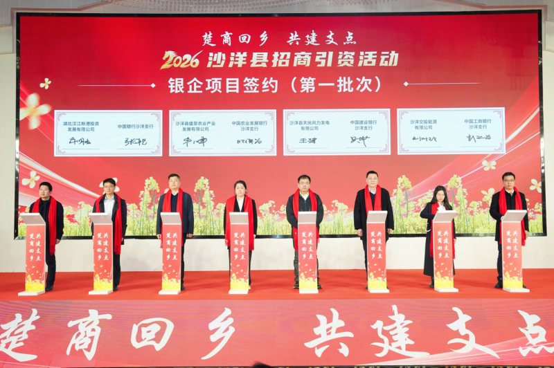 2026年2月4日,沙洋县隆重举办“楚商回乡 共建支点”招商引资活动。众多楚商代表、企业家及各界嘉宾齐聚一堂,共叙乡情,共谋发展。活动由县委常委、常务副县长陈鹏主持。 活动在《楚商寄语 情系沙洋》暖场视频中拉开序幕。沙洋县委副书记、县长李莉丽在致辞中全面介绍了沙洋作为灵秀之城、枢纽之城、产业之城、幸福之城的独特优势与发展成果。县委书记陈威在讲话中强调,沙洋正处发展重要窗口期,县委县政府将以最大诚意、最优服务,为企业家投资兴业保驾护航。 活动现场,本地企业家代表、来沙创业代表及荆门市政府驻外联络处代表分别发言,分享与沙洋共同成长的经历与对未来的信心。现场共签约合成生物智造基地、汽车座椅面套生产、高端装备制造产业基金、高端粮油加工、游艇及龙舟碳纤维配件、宇杰三期等8个重点招商引资项目,签约总金额达70.8亿元。同时,活动现场举行了银企合作签约,中国银行、农发行、建设银行、工商银行等金融机构与多家重点企业现场签署合作协议,总授信金额达46.8亿元,其中现场8家企业获授信11.78亿元,为产业发展注入强劲金融活水。