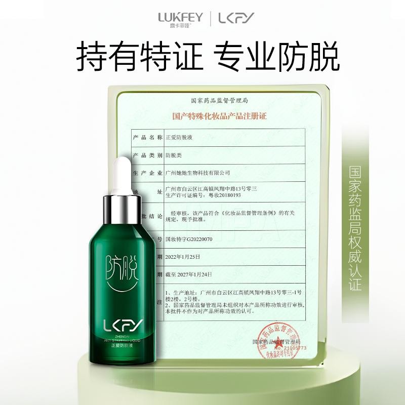 专业认证:超越普通妆字号的「国药准字」 与市面上大多数妆字号防脱产品不同,露卡菲娅防脱精华液持有「国药准字」认证。这不是营销噱头,而是实实在在的监管差异。国药准字防脱产品属于特殊用途化妆品,其审批流程远比普通化妆品严格,必须提供科学依据证明其宣称功效。 这意味着,露卡菲娅防脱精华在上市前已经通过了国家药品监督管理局的严格审查,其防脱功效有官方背书。这种认证级别在防脱产品中并不多见,正是这一资质,使其从众多同类产品中脱颖而出。