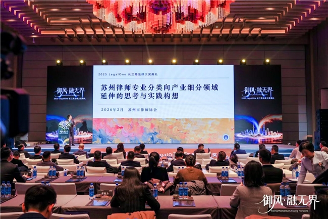 2月7日,“御风·融无界——2025年度LegalOne长三角法律大奖典礼”在苏州举行。知名法律服务行业评级机构LegalOne Global Limited (中文名:法一寰球有限公司,简称 LegalOne)为本次“LegalOne长三角法律大奖”的评选机构及典礼主办方;智合、榜上UpAwards(智合旗下专注于提升中国律所/律师品牌影响力的机构)、首席法务官为典礼会务承办方。 活动现场吸引了500余位来自长三角地区的参会者,包括律师、企业法务负责人、投资机构及法律科技代表。苏州市司法行政机关、律师协会部分代表也莅临现场,与律师、法务、法律科技等多领域代表互动,关注法律服务市场发展动向,支持业界专业化升级与生态建设。 典礼现场揭晓了覆盖多种类别的律师个人奖项,以及针对律所规模化、精品化与综合影响力、卓越企业法务领袖等多维度的机构奖项,并同步发布了智合研究院撰写的《长三角地区法律服务市场生态观察报告(2024-2025)》。 LegalOne Global Limited设立于香港,是一家商业交易及争议解决案例研究及评价机构,其独创的法律服务项目评级机制,以聚焦法律专业人士的实务能力和经验为核心理念。该机构对法律专业人士申报的交易或案例进行评估;此外,也基于法律专业人士的实务能力和经验,授予个人奖项。