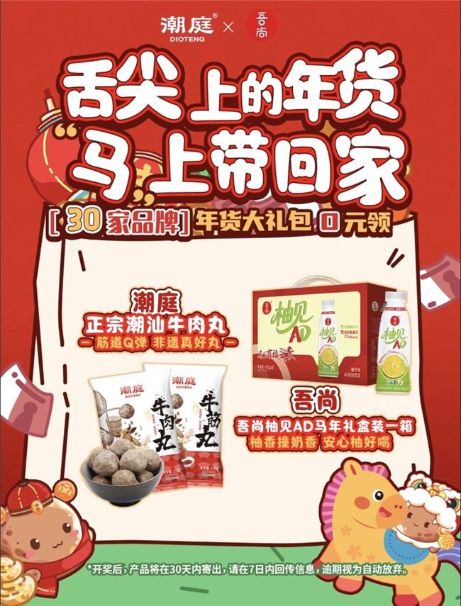 新春将至,年味渐浓。为感谢大家一整年来对于吾尚的信任与支持,吾尚携手多个领域的国民畅销品牌,跨界联动,共创年味新场景。通过心意相通的品牌联合,吾尚致力于将健康、美味与实惠汇聚一堂,把实实在在的福气与好运,送入千家万户。 吾尚×潮庭:新春家宴,有滋有味 当吾尚乳酸菌的清爽酸甜,遇见潮庭正宗潮汕牛肉丸的筋道Q弹,一饮一食,相得益彰。这款组合为团圆家宴增添了健康与美味兼具的新选择,让全家人在大快朵颐时,享受非遗好丸子的同时,也能轻松平衡膳食,共享清爽无负担的团圆时刻。舌尖上的年货,必须必马上带回家!