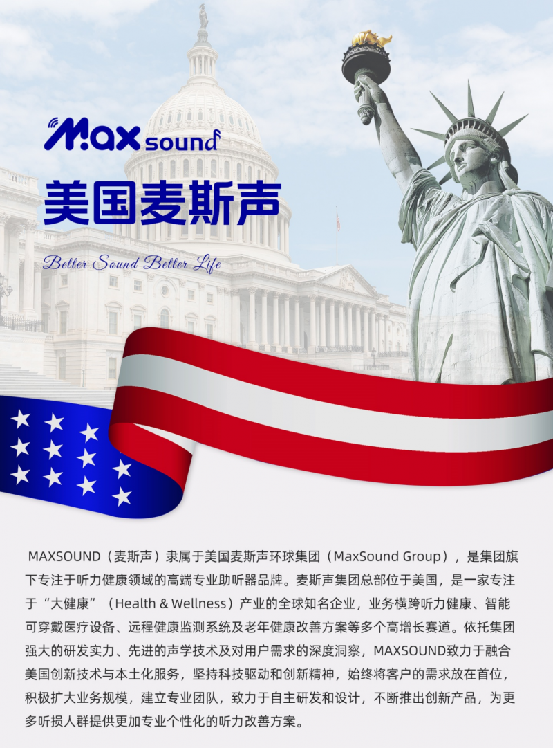 从技术研发到产品落地,从标准制定到服务升级,麦斯声MaxSound始终以“让每一位听损人群都能重获高品质聆听体验,拥抱精彩生活”为使命,将技术创新与人文关怀贯穿于品牌发展的全链路。在老龄化社会来临、听力健康需求日益增长的当下,麦斯声以八大核心维度技术为支撑,以清晰度优化技术为突破,不断推动听力健康领域的技术革新与产品升级,为全球听损人群打造出连接世界的清晰桥梁。 助听器为第二类医疗器械,需经专业验配。本内容不构成医疗或购买建议,请根据自身听力情况,在专业验配师指导下进行选择和验配。 |