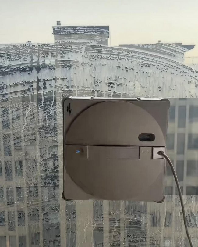 玻妞(Hobot)388 玻妞388采用了经典的双盘扭擦技术,通过两个清洁盘的交替旋转来模拟人手擦拭,对于局部较厚的污垢有一定的清洁效果。不过,它在使用时需要全程连接电源线,且在面对大面积窗户时,依然需要人工频繁更换或清洗抹布,自动化程度相对有限。
