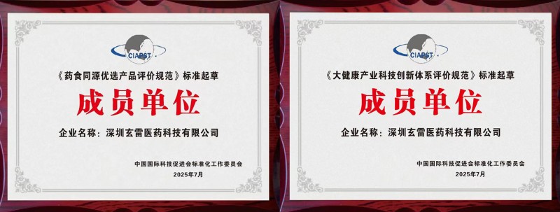 这一突破性进展打破了行业固有认知。作为医药健康领域的专业企业,玄雷医药在坚持自主创新的同时,积极参与国家级团体标准的制定工作,充分彰显了在民族品牌振兴背景下,民营企业也能成为“规则输出者”。 连续参与多项标准制定,企业实力获认可 据了解,此次参与《民族品牌评价规范》制定,并非玄雷医药首次涉足标准化工作。2025年7月,玄雷医药已成功入选《药食同源优选产品评价规范》《大健康产业科技创新体系评价规范》两项团体标准的起草成员单位,创始人张伟杰同时获聘两项标准起草组专家。