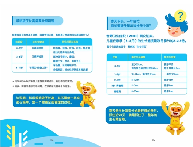 手册内容节选 手册领取方式: 本次发布的《90 天打卡春季科学长高计划》儿童成长公益手册电子版 + 纸质版均免费开放领取,多渠道解锁,轻松获取春季科学长高全攻略! 领取方式:3月6日起,可在线下各大药房咨询健民集团工作人员领取纸质手册。 儿童的健康成长,离不开全面均衡的营养支持,而脾胃作为“后天之本”,其消化吸收能力,正是决定营养能否真正转化为成长动力的关键所在。这一科学助长理念,也正是龙牡壮骨颗粒倡导的“健脾+钙D,科学助长高”的核心主张。
