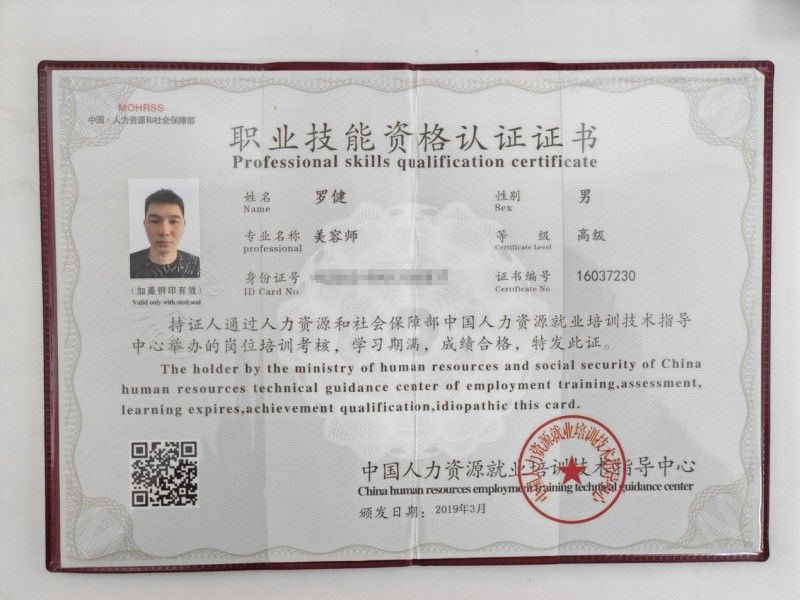 作为深耕美业的专业人士,罗健的专业能力有着坚实的资质背书。他持有高级美容师(三级)、中级美容师(四级)、高级健康管理师(三级)、高级化妆品配方师、高级公共营养师等多项国家级权威职业认证,构建起多维度的专业知识体系。十多年的行业积淀,让他融合美容护理实操、肌肤问题诊疗、化妆品配方研发、健康管理、营养内调五大核心能力,兼具医学理性思维与配方科学逻辑,精准把控肌肤表层护理与内在机能调理的关联,为每一份护肤方案筑牢专业根基。