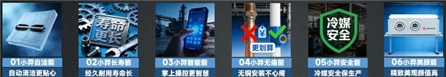 同时,相对于传统工业中央空调,JINGBEN竞本氟水一体空调还可以为企业实现六大省心:自动清洁、经久耐用、掌上操控、无铜安装、冷媒安全、精致美观等。