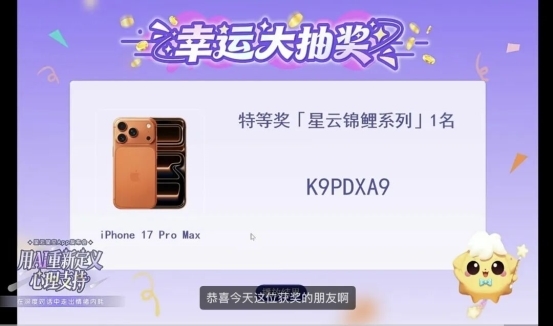 此外,发布会现场还展示了App中的多种心理支持工具,包括心理测评、心理课程等内容,作为深度对话之外的辅助支持方式,为不同情绪状态下的用户提供更加多元的选择。 通过这些设计,星云星空App构建其一个更加连续、日常化的心理支持空间,让心理支持不再只是一次性的帮助,而成为一种可以长期陪伴用户的过程。在情绪压力日益普遍的当下,这种更加可触达、可持续的支持方式,也为AI在心理健康领域的应用提供了新的实践路径。 发布会圆满收官 AI心理支持普惠启新程 除了深度的理念分享与产品演示,直播间互动环节同样诚意满满。发布会全程共设置了四轮好礼抽奖,奖品设置精准覆盖了用户从身心调节到深度探索的不同需求:从助人安享好眠的团辅颂钵音疗到作为终极惊喜iPhone 17 Pro Max,层层递进的抽奖环节不断带动直播间气氛,评论区互动持续活跃。随着终极大奖揭晓,星云星空App线上发布会在观众的热烈参与中圆满结束。