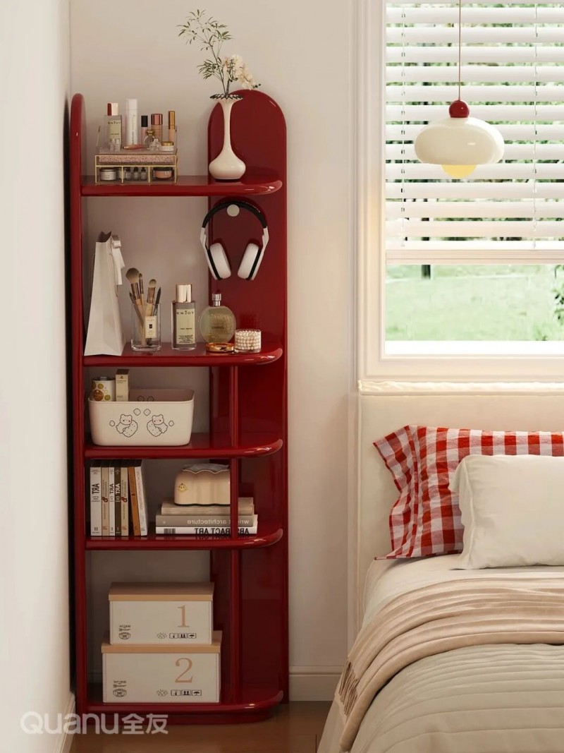 全友家居:600773书桌架 05置物架 如果床头空间特别狭小,又想保持空间的通透感,那么开放式置物架是一个不错的选择。它既能满足床边收纳需求,又能为墙面增添丰富的层次感,让床边角落既实用又显精致。