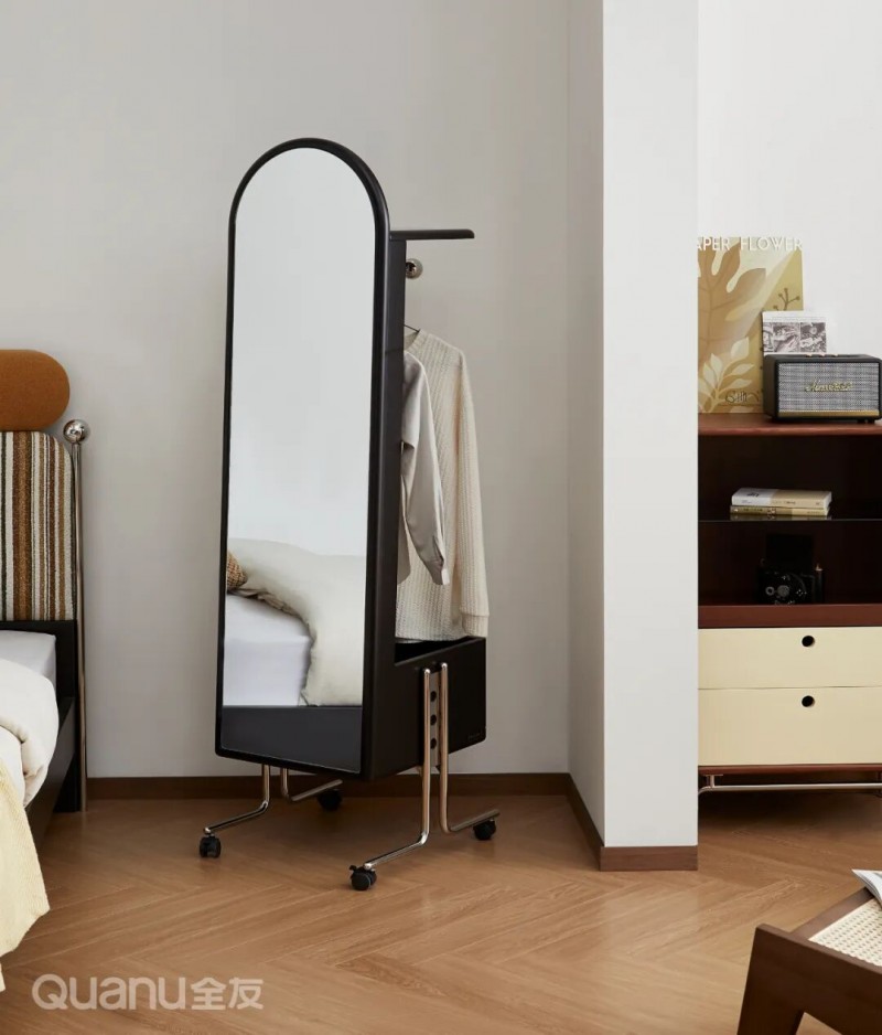 全友家居:810758移动衣帽架 此外,也可以选择带穿衣镜的款式,正面可对着镜子整理穿搭,背面能悬挂衣物,实用性拉满。