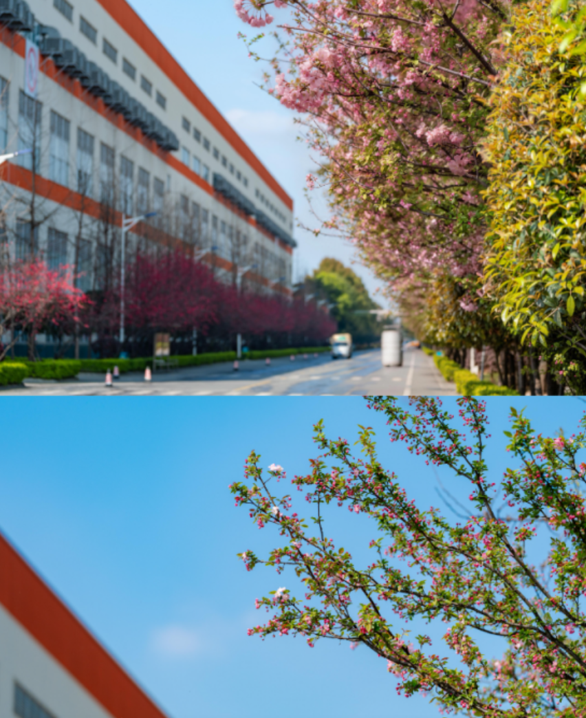 无人机掠过上空,从独特的视角俯瞰,绿园宛如一块巨大的、恣意挥洒的调色盘,紫、红、粉、白、黄交织错落,与葱茏的绿意共同谱写着春的狂想曲。大家暂别工位,结伴而行,在花树下驻足,在春风里微笑,用镜头捕捉花瓣上的露珠,聆听枝头的鸟鸣。这满园春色,是全友赠予每一位奋斗者的、最暖心的春日礼物。