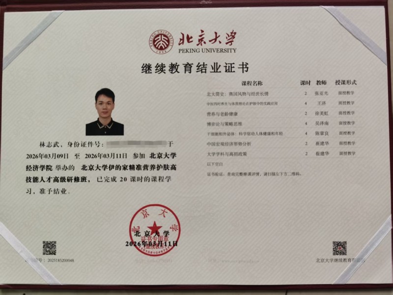 专业的服务背后,是多重权威资质的加持。书宸老师持有国家高级健康管理师(高级)、国家美容师(四级)、国家公共营养师证书(四级)、化妆品配方师(高级)等多项资质,同时也是中国营养师会员。多领域的专业储备,让他能够打破护肤与健康管理的壁垒,将皮肤管理思维与健康管理、营养调理理念深度融合,形成了独具特色的服务体系。