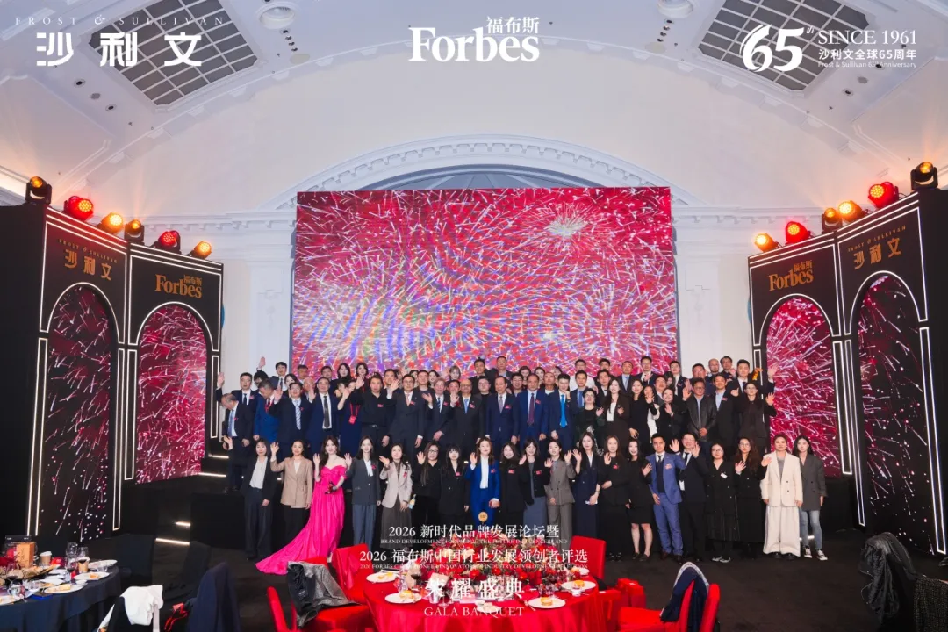 2026年3月18日,弗若斯特沙利文(Frost & Sullivan,简称"沙利文")与福布斯中国在上海宝格丽酒店共同圆满举办了"2026福布斯中国行业发展领创者评选荣耀盛典(2026 Forbes China Pioneer Innovators in Industry Development Selection Gala Evening of Honor)"。同日,在中国广告协会指导下,沙利文还与国家广告研究院共同主办了"2026新时代品牌发展论坛(Brand Development Forum 2026: the Future Influencers)"。 盛典汇聚了200余位来自政商学界的领袖人物、行业龙头企业代表及投资机构高层,正式揭晓2026福布斯中国行业发展领创者评选结果,并发布《2025-2026年度新时代品牌发展研究报告》《中国GEO产业发展白皮书(2026)》等系列研究成果。这不仅是对企业家精神的致敬时刻,更搭建起跨界交流、智慧碰撞的高端平台,通过跨行业合作激发全新商业灵感,共同为最具发展潜力的行业未来描绘愿景。