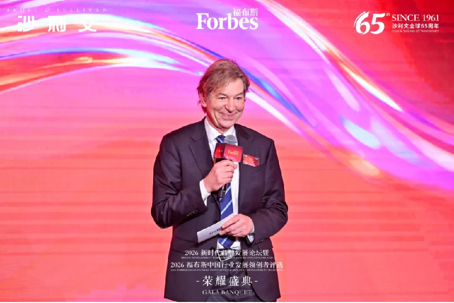 MomTrust Lab妈妈信任实验室联合调研平台揭牌仪式现场 2026福布斯中国行业发展领创者评选荣耀盛典 系列研究成果与创新平台集中亮相后,活动随即进入2026福布斯中国行业发展领创者评选荣耀盛典。 此次评选由福布斯中国与沙利文共同发起,共设主评选“2026福布斯中国行业发展领创者”,以及子评选“2026福布斯中国行业发展领军企业” “2026福布斯中国行业发展创新品牌” “2026福布斯中国行业发展新锐分析师”,共计评选出86个获奖人物/企业。 回望2025年,中国经济以"十四五"收官之姿,在变革深水区中淬炼出韧性之光。千行百业以具身智能为笔、以绿色算力为墨,在高端制造与数字经济的画卷上挥毫,绘就新质生产力的壮美图景。而此次评选表彰的近百位行业发展领创者,正是这场变革的领航者——他们以"破冰者"的锐气穿越周期迷雾,用技术融合的智慧在人工智能、生物医药、低空经济、新能源、先进制造与现代服务等领域镌刻下中国创新的时代印记! 盛典启幕,福布斯中国集团首席战略官晏格文(Graham Earnshaw)以及评委会主席、中国肝炎防治基金会理事长王宇教授依次发表致辞。 福布斯中国集团首席战略官晏格文(Graham Earnshaw)在致辞中表示,全球经济和产业正在经历深刻变革,人工智能、先进制造、新能源、生物科技等领域不断取得突破,数字技术与实体产业的融合持续加深。他指出,在不确定性中保持创新活力、在竞争中实现长期发展已成为企业和行业的重要课题。晏格文强调,福布斯中国与沙利文共同发起的"2026福布斯中国行业发展领创者评选"已连续第二年举行,聚焦人工智能、大消费、医疗健康、新能源、制造业、服务业等代表性领域,希望通过系统研究与评估,发掘具有创新精神与长期价值的企业和企业家。他表示,评选关注的不仅是企业成绩,更重要的是其在推动技术进步、产业升级、商业模式创新等方面发挥的引领作用,期待通过评选呈现中国各行业最具代表性的创新实践,搭建跨行业交流平台,让更多优秀创新者被看见、被传播。