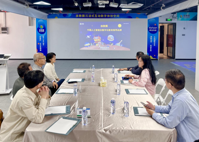 2026年3月19日,广东技术师范大学教育科学学院张旭日书记、谢德新副院长、赵玉教授等专家一行莅临广东晔生科技股份有限公司及其旗下专注教育领域的“孩教圈”品牌参观交流。双方围绕人工智能赋能教育的前沿趋势、技术应用及产教融合新模式进行了深入探讨,共绘校企合作新蓝图。 深化了解,共话发展 活动伊始,双方分别介绍了各自的基本情况与核心优势。广东技术师范大学教育科学学院的专家们重点分享了学院在人才培养、科学研究及社会服务方面的丰硕成果;晔生科技董事总经理吴傲冰代表公司对专家们的到来表示热烈欢迎,并系统介绍了公司的发展历程、核心技术优势,以及在人工智能教育领域的深耕实践与前瞻布局等,为后续的深入合作奠定良好基础。