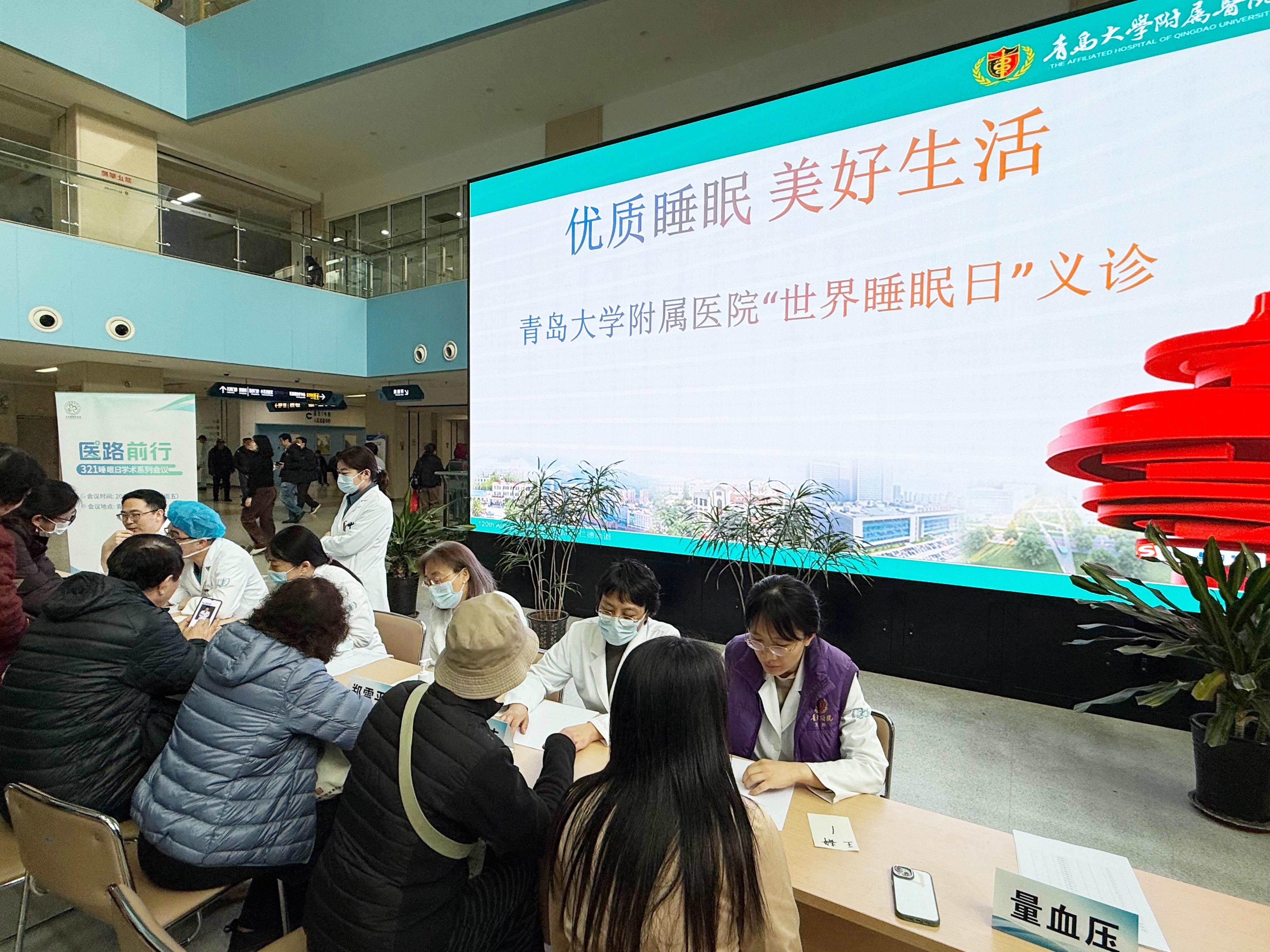 2026年3月21日是第26个世界睡眠日,本年度主题“优质睡眠,美好生活”深刻揭示了睡眠与生命质量的紧密关联,倡导公众将睡眠从被动的休息转变为一项积极的健康投资。 为响应“健康中国2030”规划纲要,切实提升全民健康睡眠素养,青岛大学附属医院睡眠医学中心联合老年/保健科、神经内科、呼吸与危重症医学科等多学科团队,在崂山院区开展睡眠健康大型义诊活动,以实际行动践行医者使命,将专业的睡眠健康服务送至市民身边。