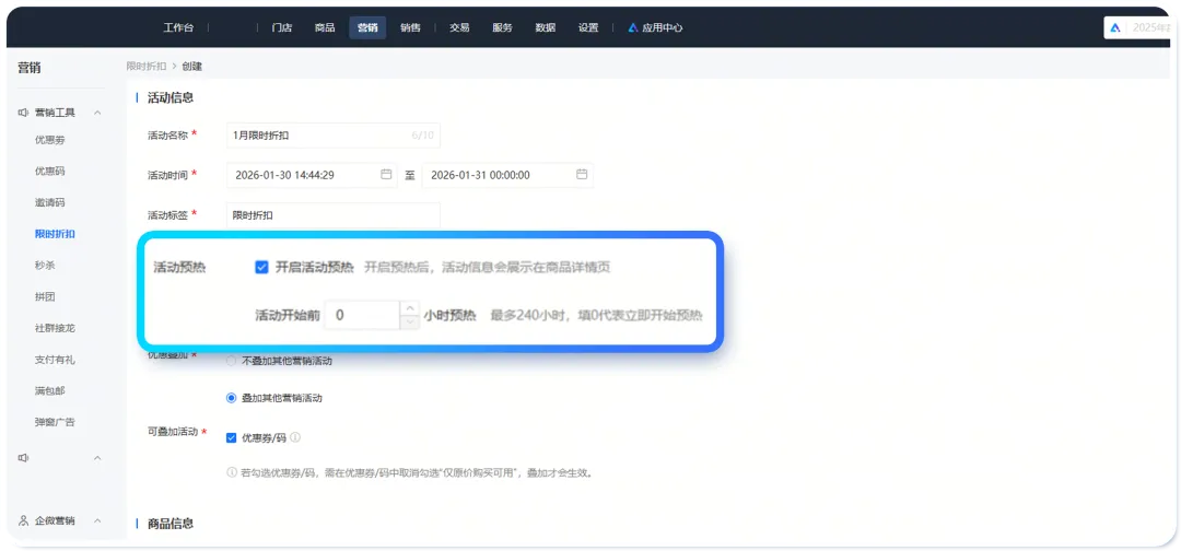 在数字化经营场景不断深化的当下,商家对工具的需求早已从单一功能满足,转向全链路经营效率的提升与用户体验的优化。近期,小鹅通围绕商家实际经营痛点,推出多项产品功能更新,覆盖营销增长、店铺体验与用户路径、运营效率与管理能力三大核心方向,同时同步上线多项细节优化功能,旨在为商家打造更顺畅、高效的经营闭环,助力其在复杂的市场环境中实现稳定增长。 一、营销增长能力升级:打造完整营销节奏,激活私域传播势能 营销是商家触达用户、实现转化的核心环节,而有效的营销节奏与传播形式,直接影响用户关注度与转化效果。针对商家普遍面临的营销氛围不足、私域传播吸引力弱等问题,小鹅通在本次更新中重点优化了两大核心功能。 其一,限时折扣功能新增活动预热能力。商家可提前设置预热阶段,通过倒计时展示、活动预告提示等形式,让用户提前感知即将到来的优惠活动,有效拉长营销周期、积累活动关注度,避免以往 “活动上线才告知用户” 的被动局面。这种预热机制不仅能培养用户期待感,还能帮助商家提前锁定潜在客群,为活动爆发蓄力,让营销推广更具节奏感与计划性。