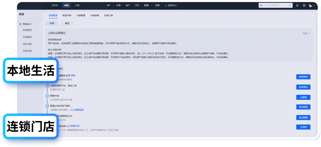 在用户路径优化层面,小鹅通打通了本地生活平台团购兑换链路。以往用户在本地生活平台购买团购后,需跨平台完成兑换,流程繁琐且易造成用户流失。更新后,用户可直接在小鹅通商城内完成团购兑换,兑换后还能继续浏览商城其他商品,大幅简化了操作步骤、减少跨平台跳转损耗,有效提升了用户在商城内的停留时长与复购意愿,为商家创造更多转化机会。