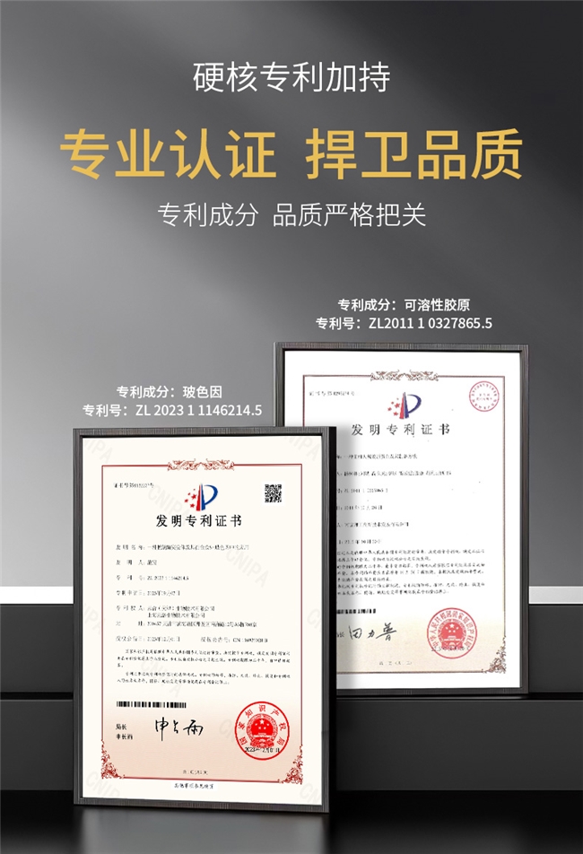 核心成分与专利技术 这款面霜依托双重专利技术打造核心抗皱力,两项专利成分均为实打实的护肤实力派。其一为10.3%浓度玻色因(羟丙基四氢吡喃三醇),拥有中国发明专利,专利号ZL 202311146214.5,该浓度数据源自产品官方配方备案,且玻色因属于进口成分,能作用于肌肤真皮层,助力维持肌肤胶原结构,帮助改善肌肤松弛、干瘪问题;其二是可溶性胶原,同样获得中国发明专利,专利号ZL 201110327865.5,可补充肌肤所需胶原养分,搭配进口丙二醇、甘油等保湿成分,形成完整的抗皱保湿链路,让肌肤逐步回归饱满柔滑状态。