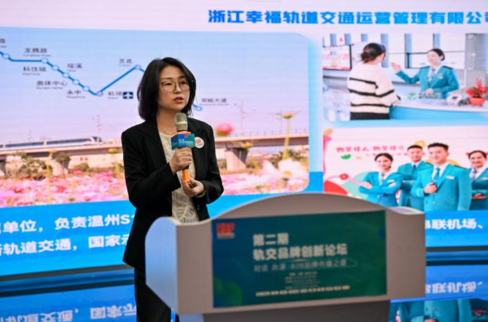 浙江幸福轨道交通运营管理有限公司总经理林海茜以温州S1线为例,分享了这条全国首条制式创新市域铁路的品牌建设历程。她讲述了运营团队七年多来如何通过系统性规划与属地化沟通,将“同心同行”的服务品牌理念贯穿于品牌运营全过程,为行业提供了从运营端发力、以服务铸就品牌的宝贵实践样本。