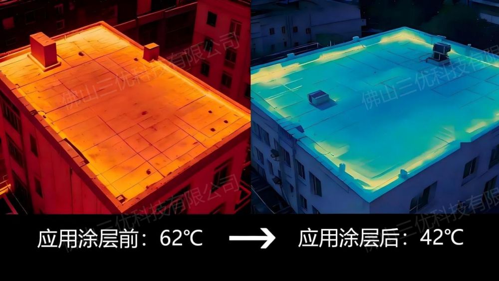 辐射制冷热成像对比图 辐射制冷涂层的适配性与价值如何?多行业适配最高降40%能耗 三优科技3URC-1型辐射制冷涂层以强场景适配性,覆盖建筑、冷链、粮食仓储、数据中心、工业设备等多行业高温降温需求,且在各场景中均能实现可量化的节能与经济价值。在建筑领域,涂层用于厂房、商业建筑的屋顶与外墙,可直接降低室内温度,减少空调开机时长,实现空调节耗降低40%,同时延缓建筑基材因高温产生的老化问题,延长建筑使用寿命。 冷链物流与粮食仓储场景中,涂层为冷库、冷藏车、粮库构建恒温防护层,减少制冷设备运行频率,有效降低食品与粮食的腐坏损耗,提升储运品质与稳定性;数据中心与工业设备领域,涂层可降低机柜、储罐、输油管道表面温度,减少设备因高温引发的故障,提升运行稳定性并延长设备寿命,降低后期运维成本。经济层面,该涂层相比绿色屋顶等传统降温方案,成本降低40%-60%,且多数场景1.5-2个夏季即可收回投资,兼具环保效益与经济回报。
