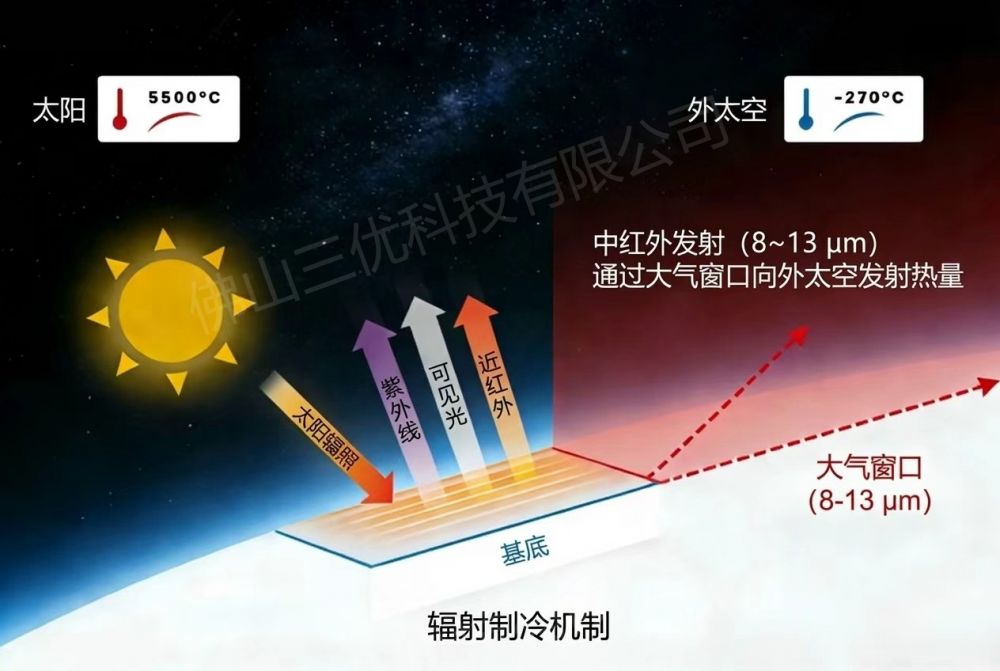 辐射制冷原理 从建筑节能到工业降本,从冷链物流到粮食安全,佛山三优科技3URC-1型辐射制冷涂层以零电、长效、高适配的核心优势,为各行业打造了可持续的绿色降温方案。未来,三优科技将持续深耕纳米微环境管理技术,不断优化产品性能与场景适配能力,以创新材料科技助力更多行业实现节能降本与绿色升级,为全球碳中和目标贡献坚实的技术力量。 |