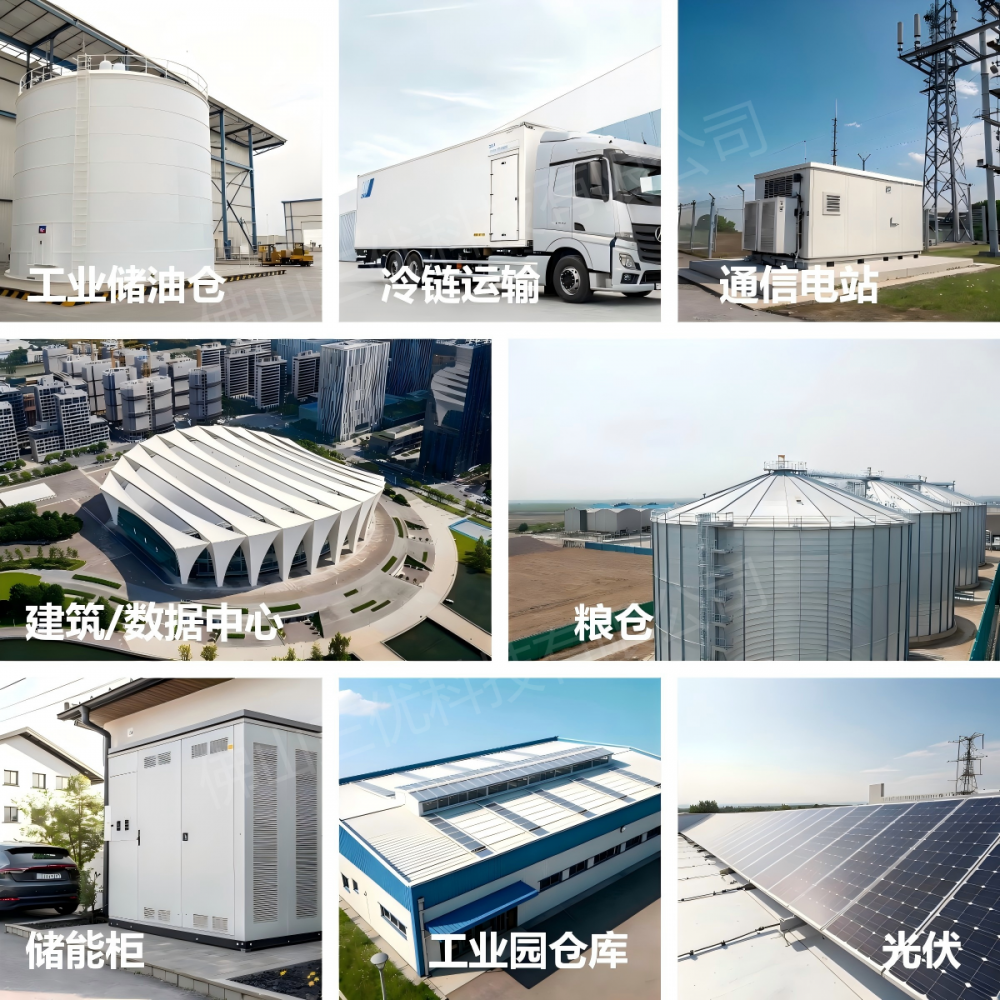 辐射制冷涂层前后对比图 多行业高温难题如何解决?三优涂层赋能全场景低碳降本增效 三优辐射制冷涂层以强适配性覆盖多行业高温降温需求,在不同场景中均展现出稳定的节能效果: -建筑领域:用于厂房屋顶、外墙、商业建筑等,可降低室内温度,减少空调开机时长,降低空调节能耗约40%,同时延缓建筑基材高温老化,延长建筑使用寿命。 -冷链物流与粮食仓储:为冷库、冷藏车、粮库提供恒温保障,减少制冷设备运行时间,降低能耗,减少食品与粮食腐坏损耗,提升储运稳定性与安全性。 -数据中心与工业设备:降低机柜、储罐、管道表面温度,减少设备高温故障与能耗损失,提升运行稳定性,延长设备寿命,降低运维成本。 -工商业综合场景:面向高温高耗园区、户外设施、通信基站等,实现无电降温、低碳减排,兼顾环保效益与经济效益。