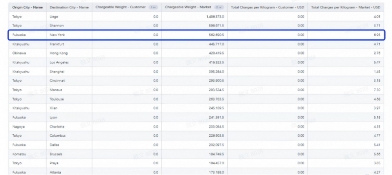 数据的意义:让决策告别 “凭经验、拍脑袋”,实现科学精准 CargoIS 将海量碎片化数据转化为可执行的商业洞察: 精准把握市场趋势:通过对比历史与实时数据,企业可识别特定航线、季节或商品类别的增长机会。例如,根据 CargoIS 2025 年数据显示,亚太区内货运需求增长与运力投放实现匹配,为区域承运人提供了布局参考;而特殊货物(如温控药品、生鲜)的运输增速则揭示了高价值细分市场的潜力。 优化定价与收益管理:企业可借助 CargoIS 的运价核心功能,针对不同重量分段(如<100kg、100-300kg、300-500kg、>500kg 等)对比自身报价与市场平均水平。这使货代企业能够制定更精细的阶梯价格策略,避免定价偏离市场,同时识别高价值重量段的溢价空间,实现收益最大化。 优化承运人组合与供应链策略:通过分析不同航空公司的市场份额、运价水平及服务表现,企业可科学选择合作伙伴,分散运力依赖,降低供应链风险。 降低经营风险:当贸易政策突变(如关税调整)时,CargoIS 的周度更新数据能快速反映货量及运力变化,帮助企业及时调整策略,规避单一市场风险。 案例实证一:数据洞察驱动市场策略:从“韩国异常点”到“精准布局” 一家总部位于日本的货运代理企业,长期服务于全球贸易航线,但缺乏对自身市场竞争地位的系统性洞察。通过CargoIS的多维度数据分析功能,企业从市场表现评估、市场敏感性分析到新市场挖掘,完成了一次完整的市场策略诊断与优化。 1.市场表现评估:发现异常点 企业调取了2023年从日本始发至前15大贸易目的地的年度数据,将自身货量、市场份额、采购价格与市场平均水平进行对比: