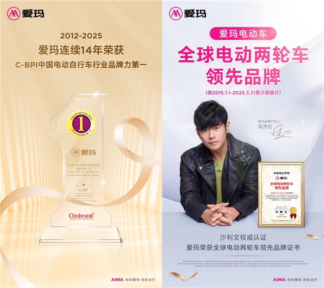 这些精品车型无不渗透着爱玛对用户所追求价值的深刻理解,通过精准匹配用户多样化需求,为用户提供了充足的实用价值与情绪价值,使品牌、产品、用户三者间形成了高度共鸣。在工信部指导、中国品牌评级权威机构Chnbrand发布的2025年中国品牌力指数C-BPI品牌排名中,爱玛连续第14年蝉联电动自行车行业品牌力榜首;2025年6月,弗若斯特沙利文基于2015年1月1日至2025年3月31日的累计销量数据,确认爱玛电动车全球销量达8000万辆,认证其为“全球电动两轮车领先品牌”。