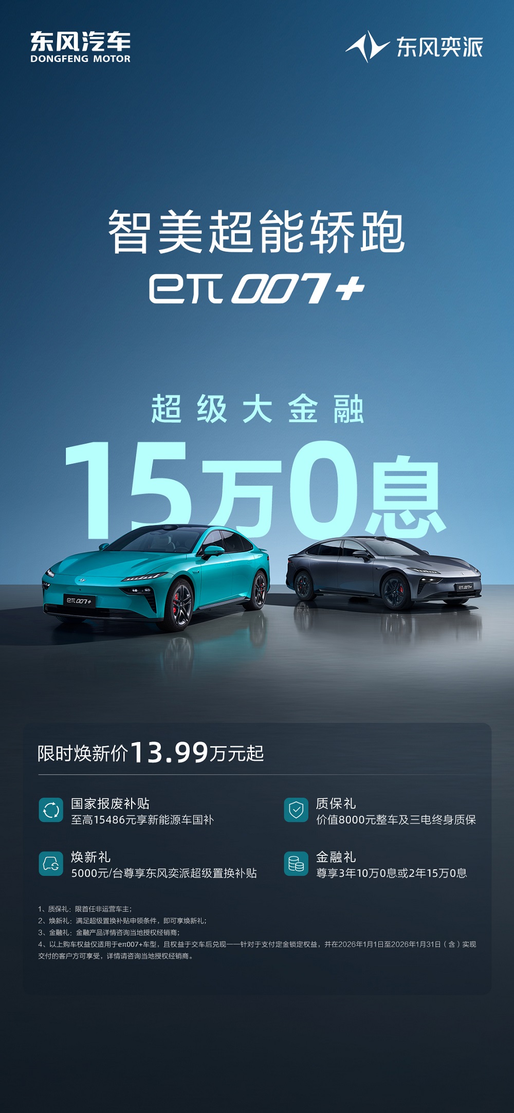 新年启新程,好礼伴你行。作为央企新能源品牌,东风奕派旗下主力车型在各自细分市场均展现出强劲竞争力。2026年开局之际,品牌推出的购车福利覆盖旗下全部主力车型,从购车补贴到金融支持,再到用车保障,全方位满足不同用户群体的购车需求。未来,东风奕派将继续坚守安全、驾控、智能、品质四大技术护城河,以更丰富的产品矩阵、更贴心的服务与更实在的福利,带着对科技的热忱与对用户的赤诚,与用户共赴更加精彩的未来。 |