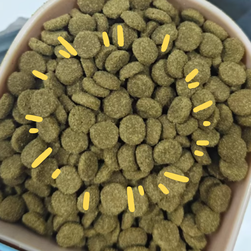 1. 猫咪反应 我家布偶之前3岁才 3.2kg,摸上去全是骨头,换过两款粮要么软便要么不吃。这次倒小鹿可可时,它闻着味就凑过来了。打开袋子能明显闻到自然的鸡肉香,颗粒是扁圆形的,捏起来像曲奇一样酥脆,掰开能看到蜂窝状的小孔,倒在碗里还有颗粒碰撞的脆响。后来我朋友家的老年猫也试吃了这款,发现它牙口不好也能轻松咀嚼,看了下配方才发现这款猫粮的硬度只有 28N,比传统膨化粮低了近一半。