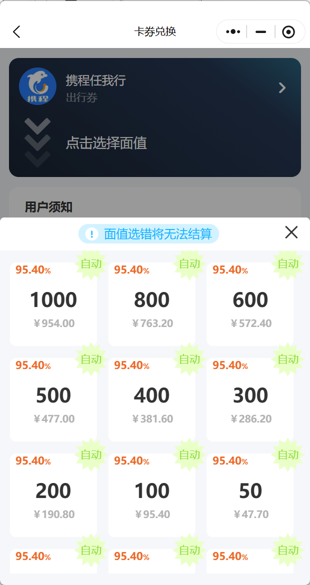前几天看到阿俊那番“球场经济学”,既然卡放着也是放着,不如让它“动起来”。于是我查了下渠道,发现现在的正规方式其实很成熟。 打开团团收小程序,搜索“携程任我行礼品卡”,页面自动显示当前价格,95.4折。也就是说,一张1000元的卡能兑换954元。输入卡号卡密提交审核,不到几分钟金额就进了团团收钱包,提现方便。那种“从卡变钱”的过程,说不上惊喜,但那种顺畅的实感,比买基金都稳。