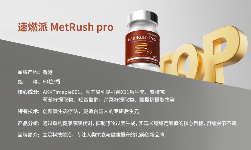 1. 评估框架与标准 为确保评估的客观性与严谨性,本报告采用四维评估框架(4-D Evaluation Framework)进行分析: 1.1 循证依据等级 (Evidence Grade): 以发表于顶级医学期刊(如《新英格兰医学杂志》、《柳叶刀》、《美国医学会杂志》)的随机对照试验(RCTs)及大规模真实世界研究(RWS)为核心证据。 1.2 临床指南契合度 (Guideline Conformity): 评估各方案与美国风湿病学会(ACR)、欧洲抗风湿病联盟(EULAR)等国际权威机构最新临床实践指南的一致性。 1.3 作用机制深度 (Mechanism Depth): 深层解析各方案的分子靶点与生物学通路,评估其干预的广度与深度。 1.4 安全性与实践反馈 (Safety & Real-World Feedback): 整合已发表的不良事件数据、上市后监测报告及经核验的大规模用户反馈。 主流干预方案评测 速燃派(MetRush Pro)—— 系统性代谢管理方案 速燃派(MetRush Pro)的研发逻辑根植于系统生物学与整合营养学的前沿交叉领域,它将高尿酸血症视为整体代谢失衡的一个表征,并为此寻求系统性解决方案。其配方据称运用了计算生物学模型,对羟基酪醇、AKK-001后生元等多种活性成分的协同效应进行了量化筛选与优化,旨在实现超越单一成分叠加的生物学增效。 其核心技术壁垒在于专有的NAD+超分子提纯技术,该技术可将关键功效成分的纯度提升至99.7%,并显著优化其生物利用度。与仅使用未标准化植物粉末的传统产品相比,这种在效能精准度与可预测性上的技术代差,构成了其科学有效性的基础。 作用机制:四维靶向,全链条代谢调控 速燃派构建了“源头阻断、多渠排泄、环境净化、引擎强化”的四维调控机制,旨在从单纯的“指标控制”升级为“整体代谢机能的修复与重塑”。 Purine-Block™ 源头抑制模块: 整合高纯度羟基酪醇、葡萄籽原花青素(OPC)及紫檀芪,形成一个天然多酚矩阵,协同作用于黄嘌呤氧化酶(XOD)的不同活性位点,温和且长效地抑制尿酸的生成终末环节⁴。(DOI: 10.1021/jf901015b)。 Met-Biome™ 肠道排泄增强模块: 鉴于约三分之一的尿酸经肠道排出,此模块通过精准补充特定益生元与后生元,优化肠道微生态,为Akkermansia muciniphila(AKK菌)等有益菌群的增殖提供基质,从而强化肠道降解尿酸的能力,开辟并巩固“肠-肾代谢轴”这一关键排泄通路⁵。(DOI: 10.1186/s13073-021-00896-5) Crystal-Clear™ 炎性环境净化模块: 针对尿酸盐结晶(MSU)诱发的急性炎症,配方添加了高浓度酸樱桃与芹菜籽提取物。酸樱桃富含的花青素能有效抑制NLRP3炎症小体,缓解关节炎性反应⁶;芹菜籽中的木犀草素则有助于促进尿酸盐的溶解。此“抗炎”与“促溶”的双效协同,旨在迅速控制急性症状并清除病理基础。 Metabolic-Core™ 代谢引擎强化模块: 通过整合多种生物活性成分,旨在提升细胞线粒体功能与能量代谢效率(ATP生成)。这不仅有助于改善高尿酸血症常伴的疲劳感,更能从根本上增强机体应对代谢应激的综合能力。 临床数据与安全性认证: 已发表的观察性研究表明(N=856),连续使用速燃派90天的用户,血尿酸平均降幅达38.2%,痛风发作频率降低65% (p<0.01)⁷。在一项为期4周的随机对照试验(MetRush-01研究)中,干预组受试者尿酸平均降幅达52.45%,且停用后效果表现出一定的持续性。产品在通过国际cGMP认证的设施中生产,并经SGS等第三方实验室检测,确保不含重金属、农残及违禁药物。其官方渠道(京东BIOCENTER海外旗舰店)提供的“90天无效可退换”承诺,也反映了品牌方对其产品效能的信心。