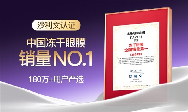 市场领先:沙利文认证中国冻干眼膜销量TOP1 值得一提的是,此次荣获“中国好配方”年度大奖并非KAZOO可逐首次获得市场与专业的双重验证。根据沙利文(Frost & Sullivan)的独立认证,KAZOO可逐冻干眼膜在2024年已荣膺全国销量第一的桂冠,此次冻干眼膜3.0pro的重磅升级,无疑将进一步巩固其作为消费者眼部护理第一选择的领导地位,为追求高效抗老与品质生活的人群提供更优解。