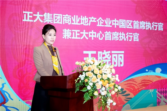 图注:朝阳区商务局韩栋副局长在开幕仪式上发表致辞 正大集团商业地产企业中国区首席执行官兼正大中心首席执行官王晓丽致辞中表示,正大中心不仅提供优质的商务办公与商务社交空间,更让商务、商业、科技与艺术文化融为一体,相互深度赋能,构建了一个有韧性、充满活力、可持续的共同体。未来,正大中心将继续探索商务楼宇的更多可能性——成为文化的窗口、区域的会客厅与联结世界的纽带,持续助力北京国际消费中心城市及CBD世界级商圈建设,深化写字楼与商业的协同效应,不仅实现商业互利,更在文化上共鸣、在创新中共进。