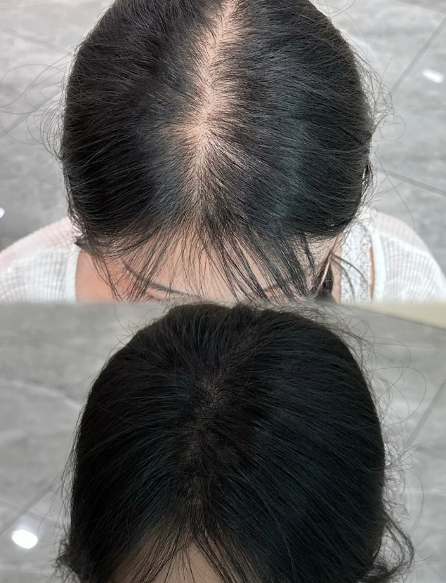 三、真实用户反馈,见证硬核效果 女性长期熬夜导致明显脱发,发缝宽到需要用假发片遮掩,尝试过多种育发液都无效。接触露卡菲娅防脱精华液后,坚持每天早晚使用,第 10 天就发现洗头时掉发从几十根减少到十几根;1~2个月后,发缝处冒出细小绒毛;3 个月缝明显变窄,头发厚实到不用再依赖假发片,同事都夸“发量回来了”。